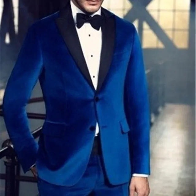 Bleu Royal Velours Hommes Costumes Pour Mariage Deux Pièces Veste