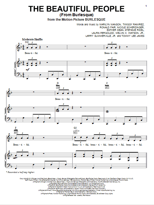 Christina Aguilera The Beautiful People From Burlesque Sheet Music Notes Chords Download Printable Piano Vocal Guitar Right Hand Melody