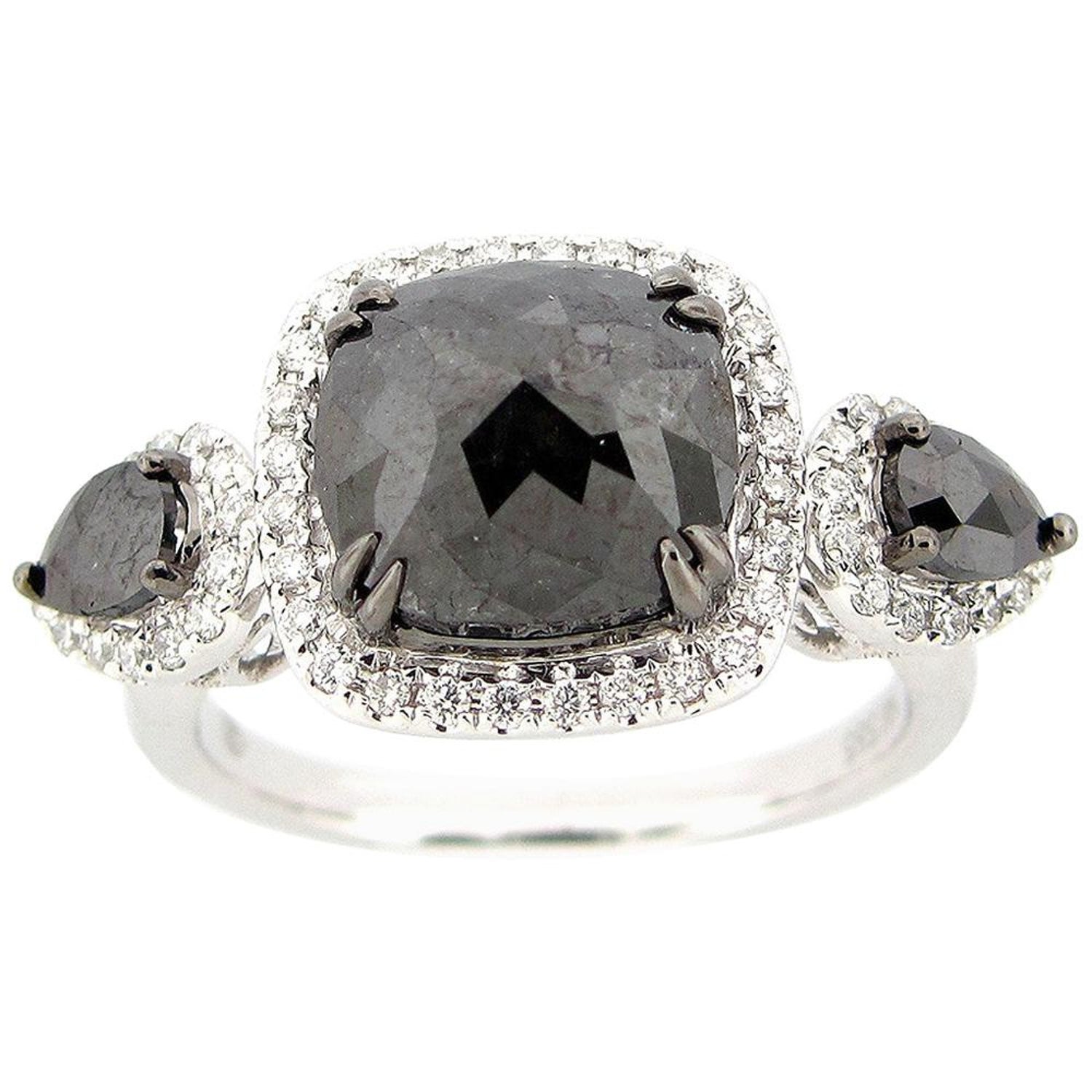 3 51 Carat Rose Cut Black And White Diamond Ring