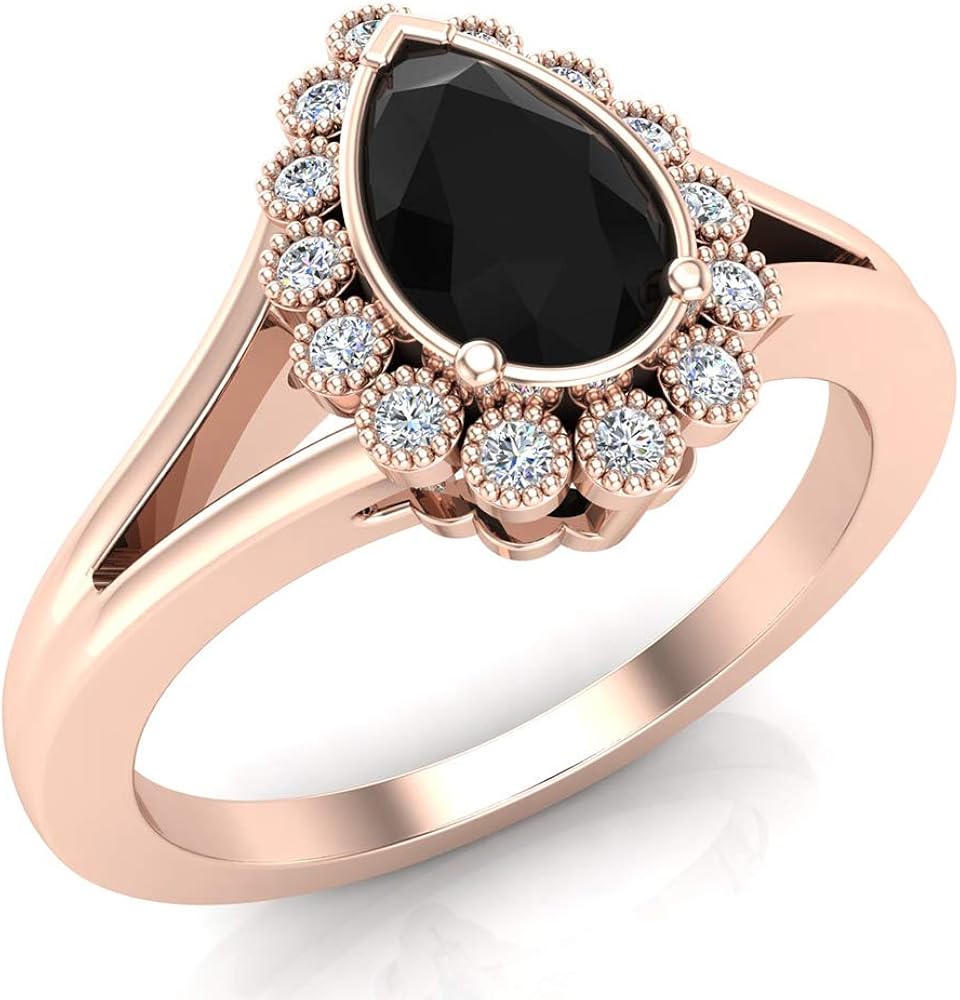 Black Onyx Engagement Ring Vintage Pear Shaped Black Diamond Moissanite Wedding Band Women Rose Gold Unique Bridal Jewelry Anniversary