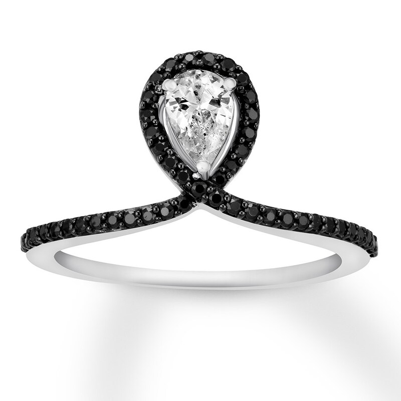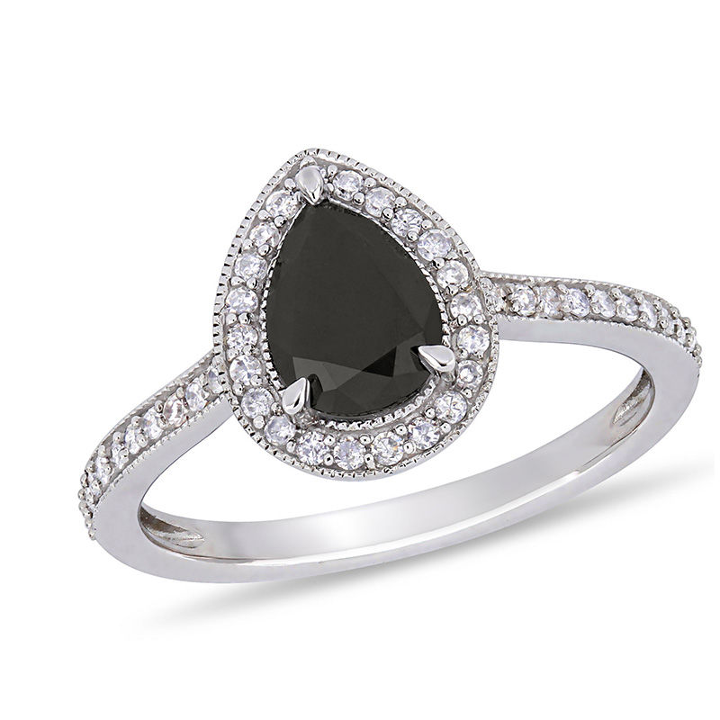 1 1 5 Ct T W Pear Shaped Enhanced Black And White Diamond Frame Vintage Style Engagement Ring In 10k White Gold Zales