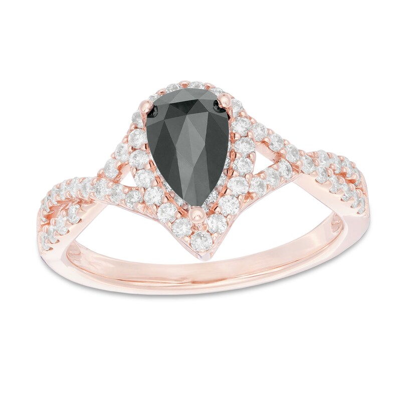1 3 4 Ct T W Enhanced Black And White Pear Shaped Diamond Frame Twist Engagement Ring In 10k Rose Gold Zales