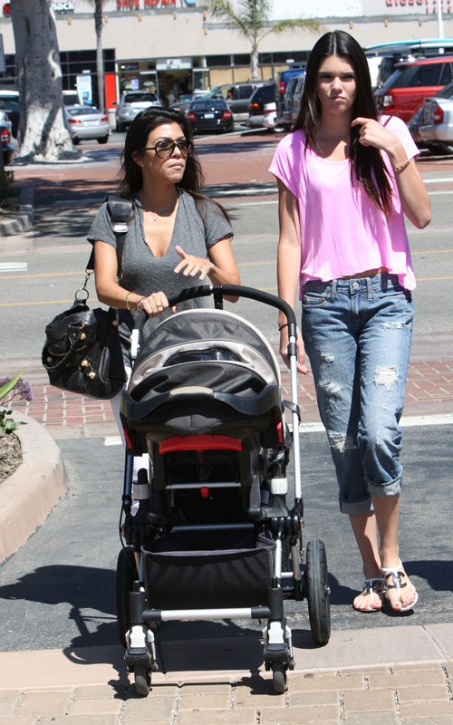 Kaia Gerber in blue fleece jacket and leggings in LA on April 3