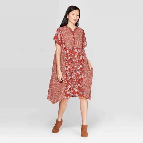Women S Floral Print Short Sleeve V Neck Dress Knox Rose Red