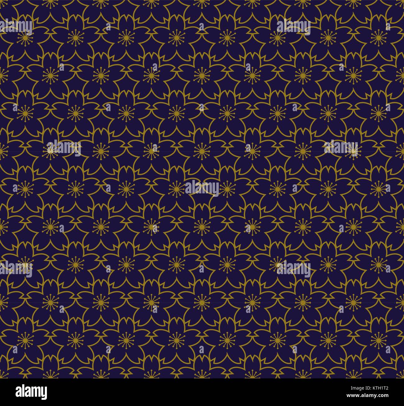 Antique Seamless Background Cherry Blossom Flower Outline Stock