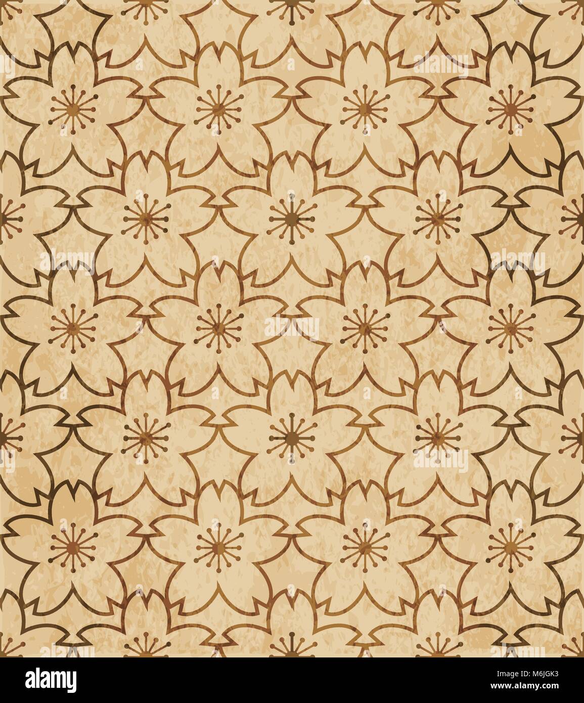 Seamless Retro Worn Out Background Cherry Blossom Flower Outline