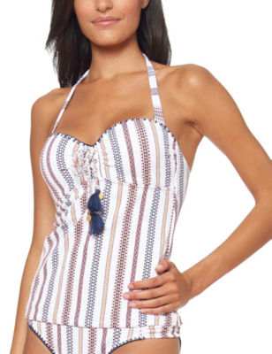 Jessica Simpson Womens Line It Up Striped Tankini Swim Top Stage