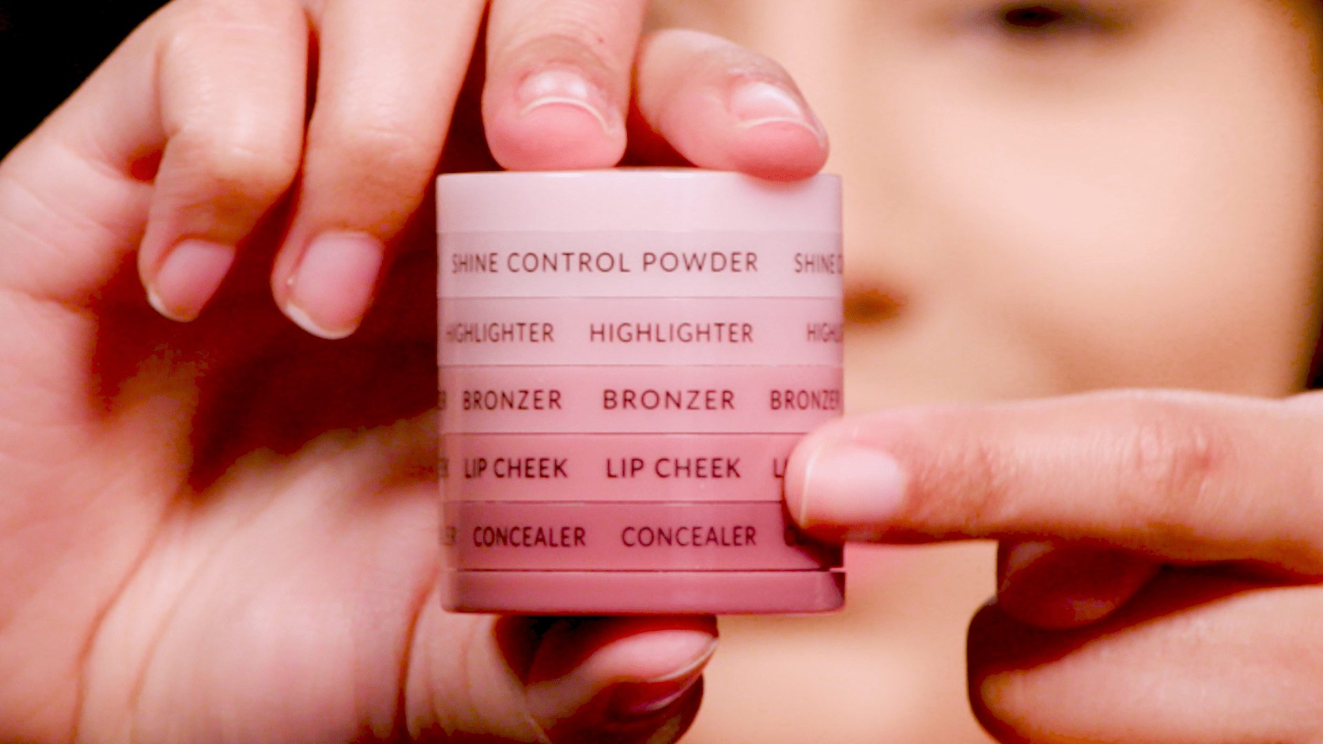 Nail polish, mascara, lipstick, eye shadows, brush, powder, lip gloss.
